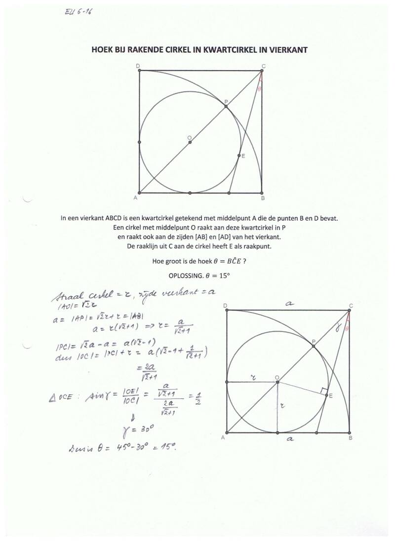 OPGAVE 16. Hoek bij cirkel in kwartcirkel in vierkant