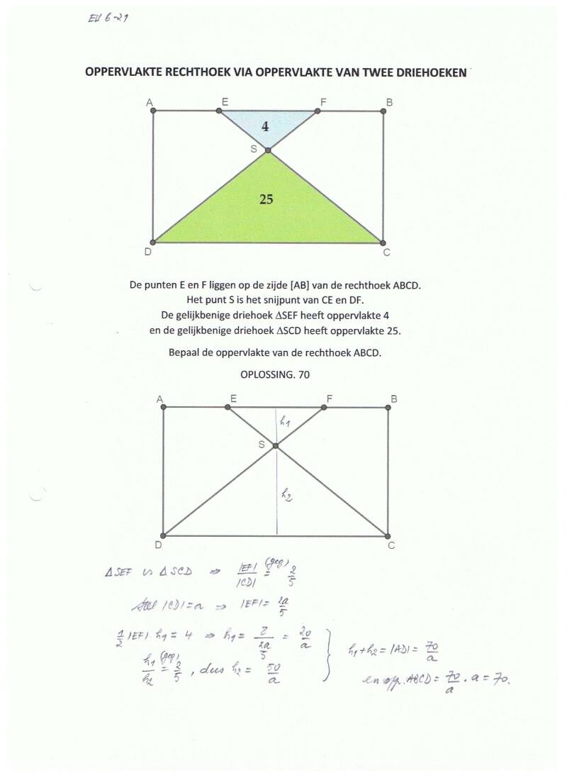 OPGAVE 21. Oppervlakte rechthoek via twee driehoeken